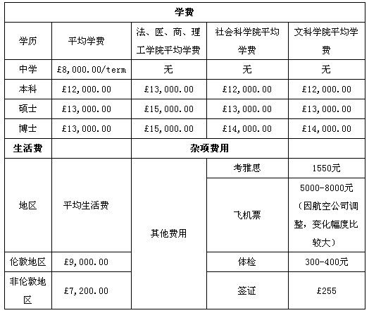 2013年英國(guó)留學(xué)費(fèi)用一覽表