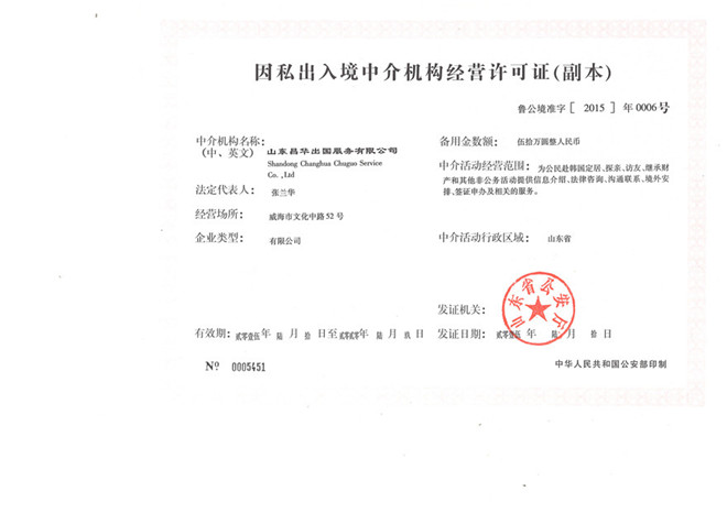 山東昌華出國(guó)服務(wù)有限公司